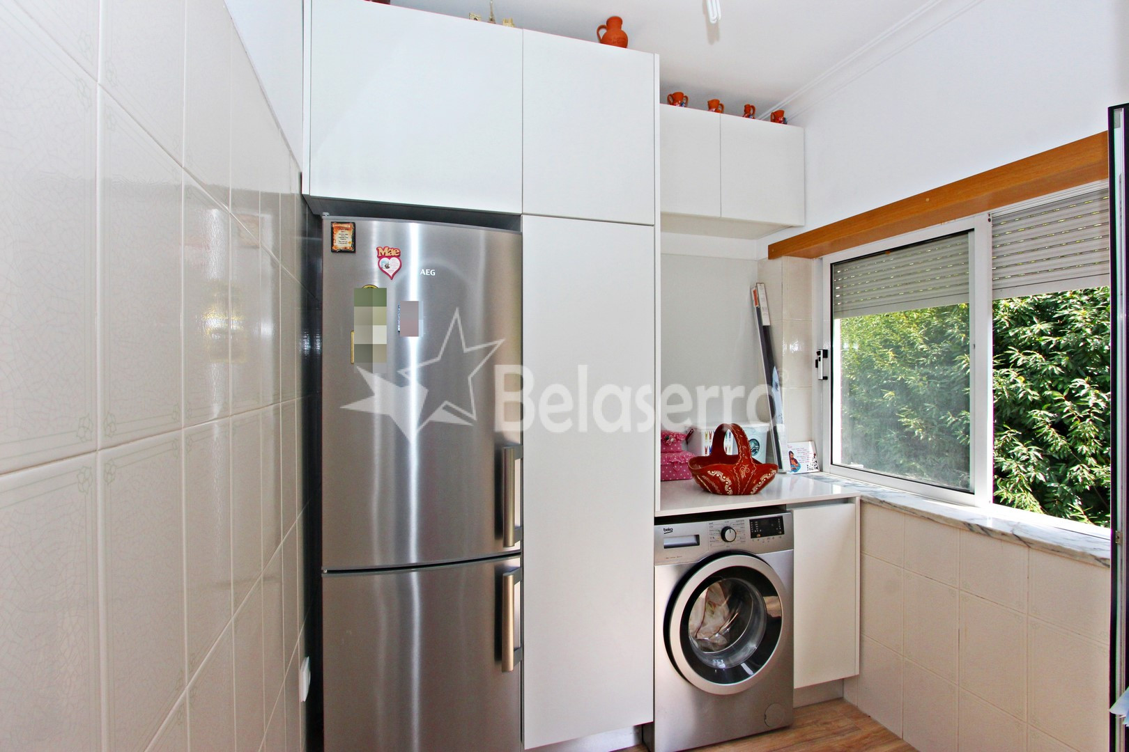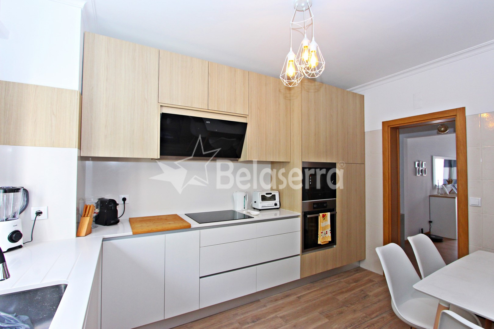 Este imóvel oferece uma disposição inteligente e áreas generosas, com um hall de entrada que o conduz a uma cozinha totalmente mobilada e equipada, com acesso direto a uma varanda, perfeita para desfrutar de um café da manhã tranquilo.