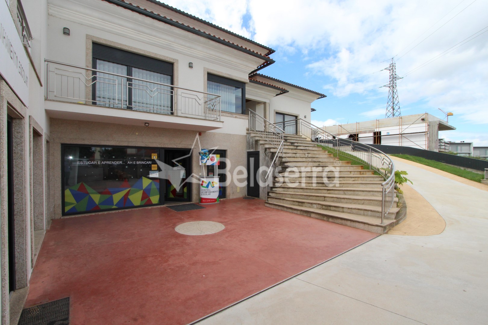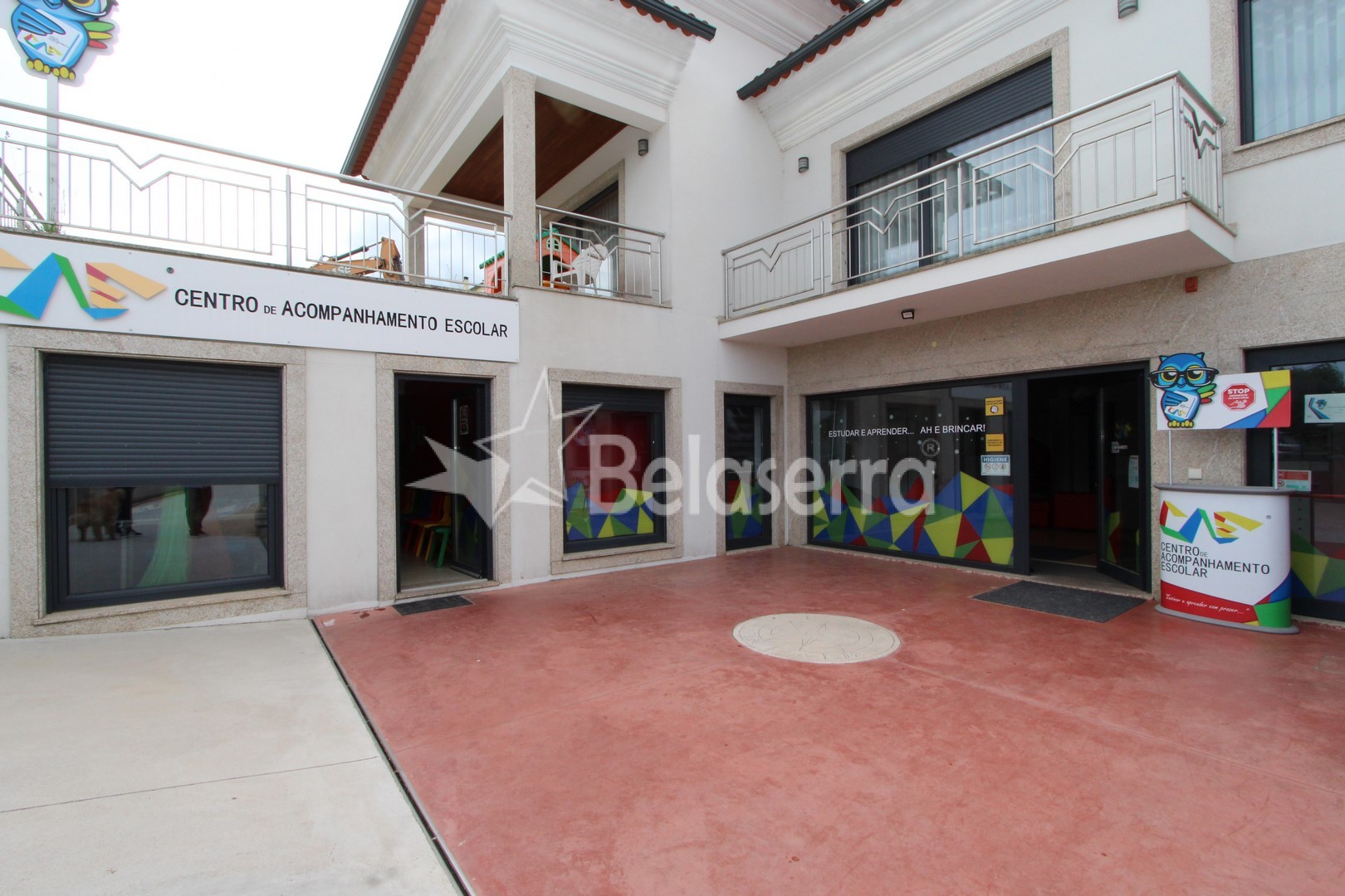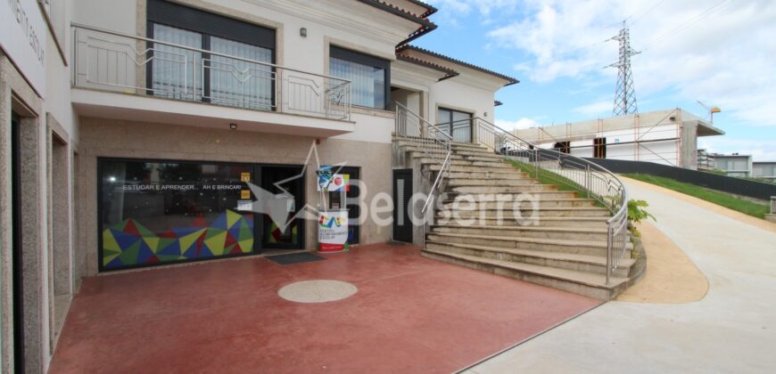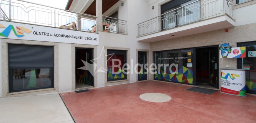 R/C : Espaços Comercial preparado e e um uso como Centro de explicações com hall de entrada com balcão de receção e espaço para reuniões; 5 salas de aulas; 1 sala de refeições e wc´s de serviço.