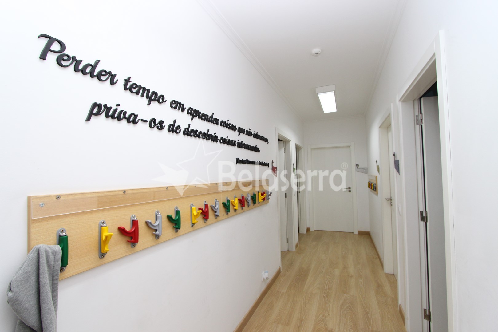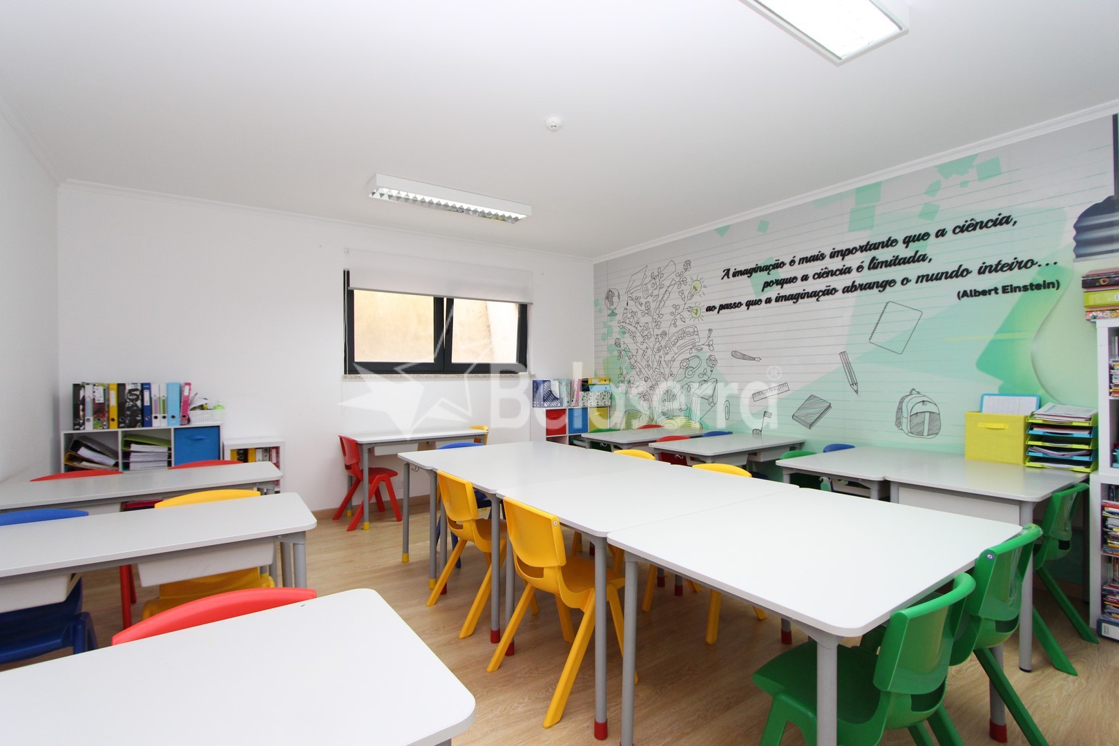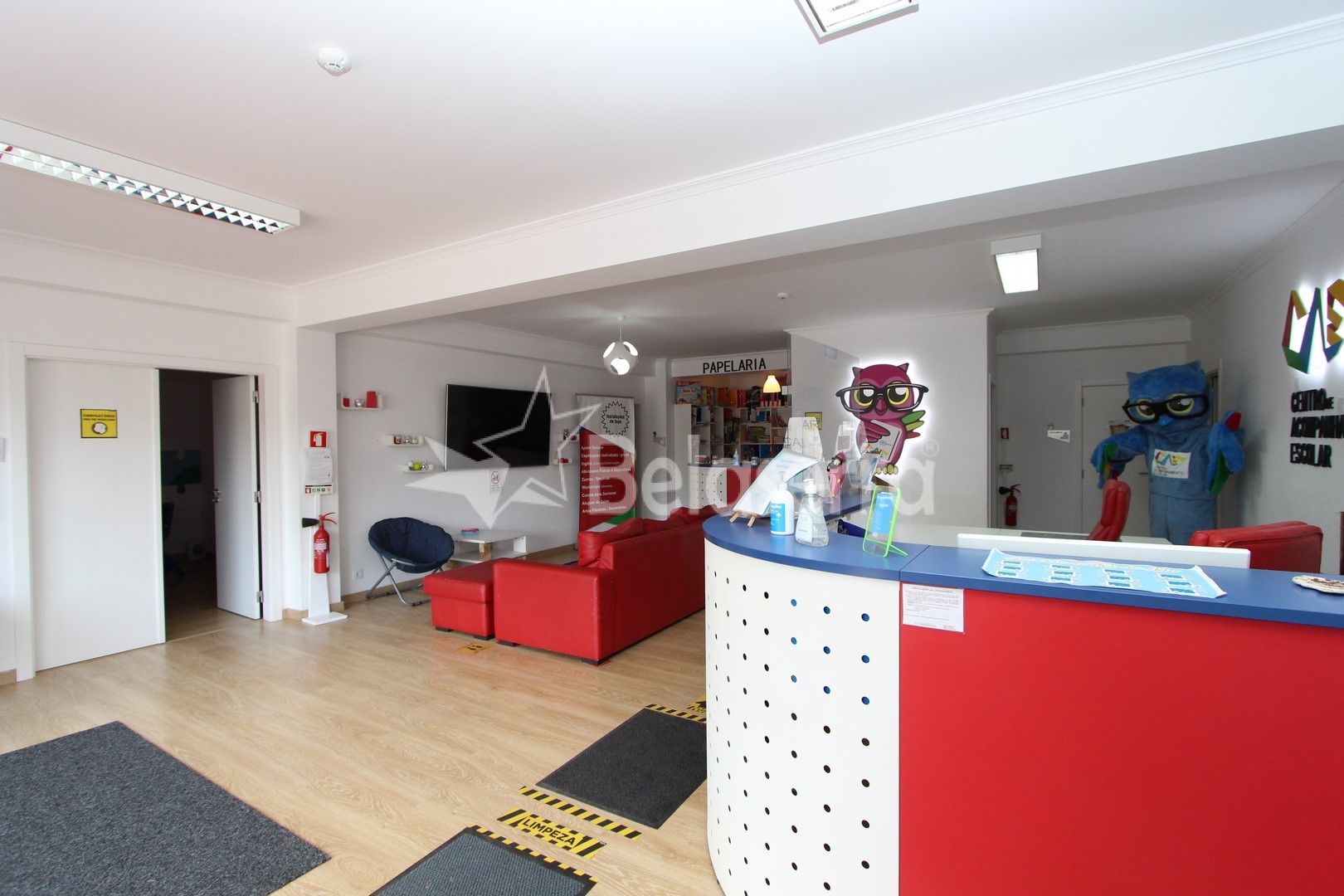 R/C : Espaços Comercial preparado e e um uso como Centro de explicações com hall de entrada com balcão de receção e espaço para reuniões; 5 salas de aulas; 1 sala de refeições e wc´s de serviço.