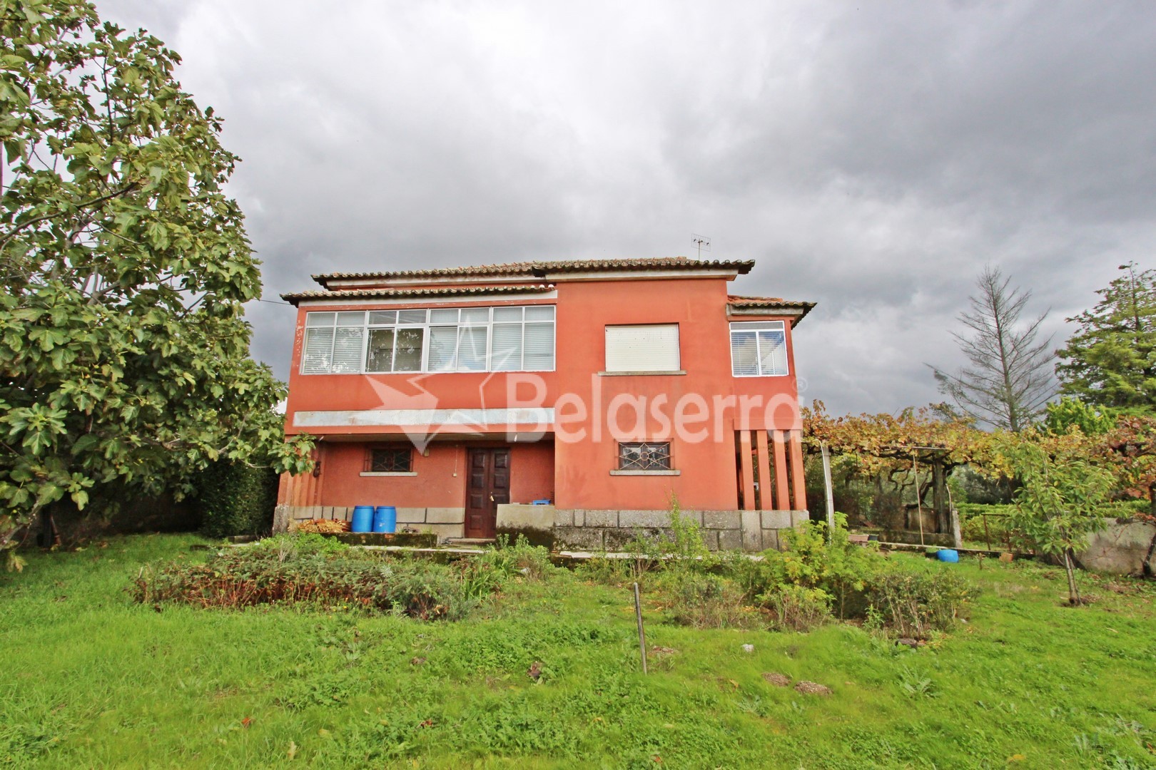 R/C: garagem, 2 arrumos, espaço amplo, escadaria exterior de acesso ao 1º piso